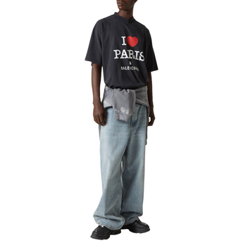 Унісекс футболка Balenciaga I Love Paris виконана з м’якого вінтажного трикотажу. Має класичний круглий виріз, короткі рукави та впізнаваний принт “I Love Paris & Balenciaga” спереду.