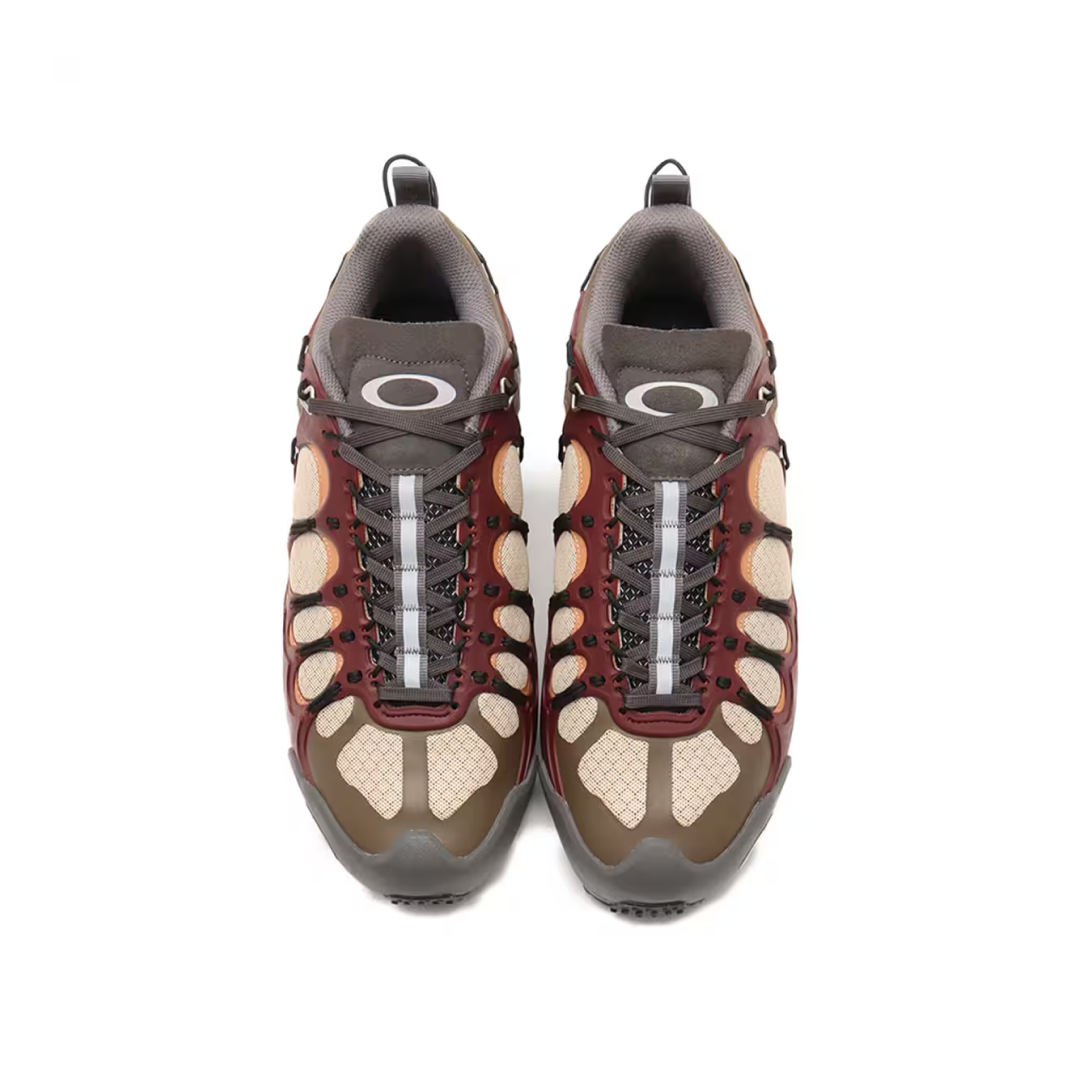 Кросівки з колекції Oakley Factory Team. Інноваційне трекінгове взуття з природним натхненням у дизайні та сучасною функціональністю. Модель має синтетичну замшу, формовану клітку та посилену систему шнурівки для надійної фіксації. Сітчасті вставки забезпечують вентиляцію, а підошва O-Grip дарує впевнене зчеплення на будь-якій поверхні. Устілка Ortholite разом із сформованою середньою підошвою відповідають за комфорт і стабільність під час руху.